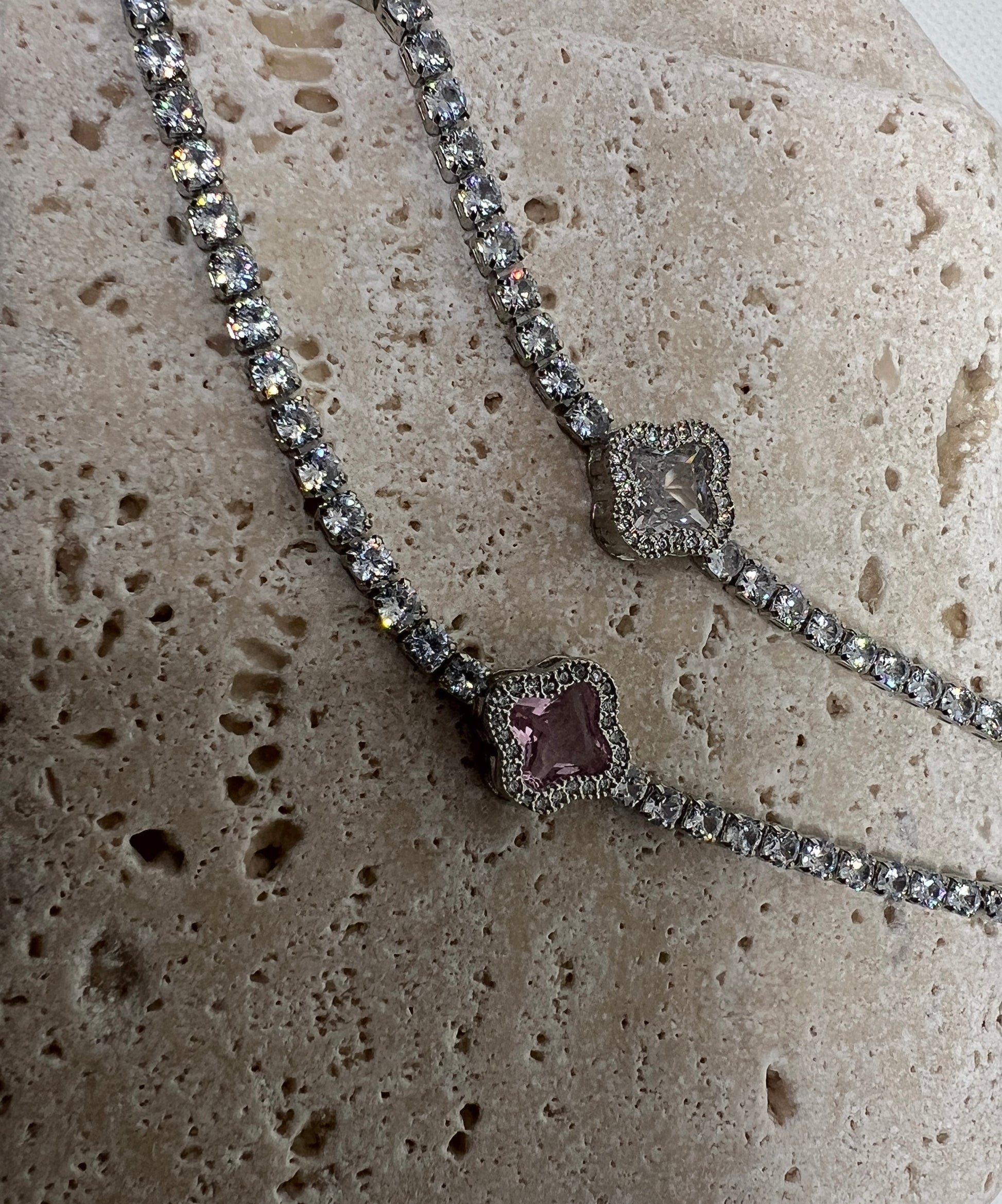 Ein Schmuckstück, das seinem Namen alle Ehre macht – Splendore bedeutet Glanz & Pracht ✨. Dieses exklusive Armband ist mit funkelnden Zirkonia-Steinen besetzt, die bei jedem Licht strahlen wie kleine Sterne 💎. Das zentrale Blüten-Element – wahlweise in klar oder rosa – verleiht dem Armband eine elegante, feminine Note 🌸.