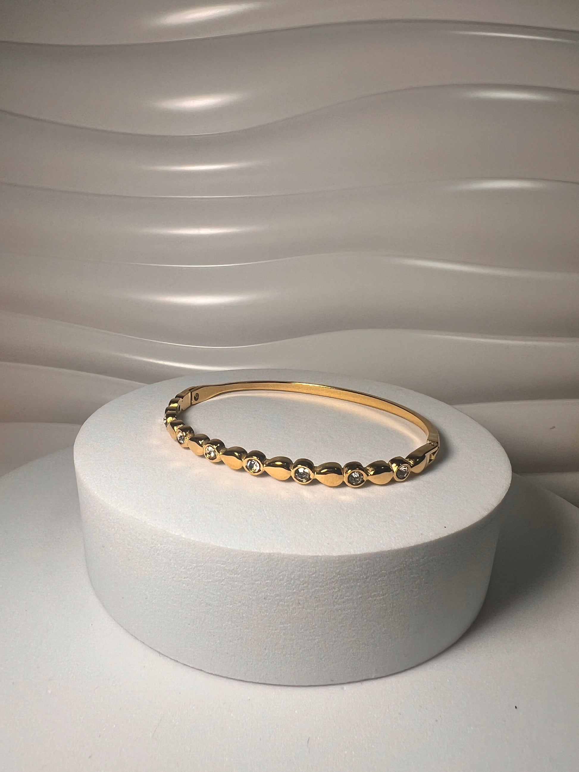 Gemma ist ein eleganter Armreif mit klarer Form und fein eingesetzten Zirkonia-Details. Die gleichmäßigen Akzente verleihen dem Design einen dezenten Glanz und machen den Armreif vielseitig kombinierbar – ideal für den Alltag oder als stilvolles Highlight zu schlichten Looks ✨