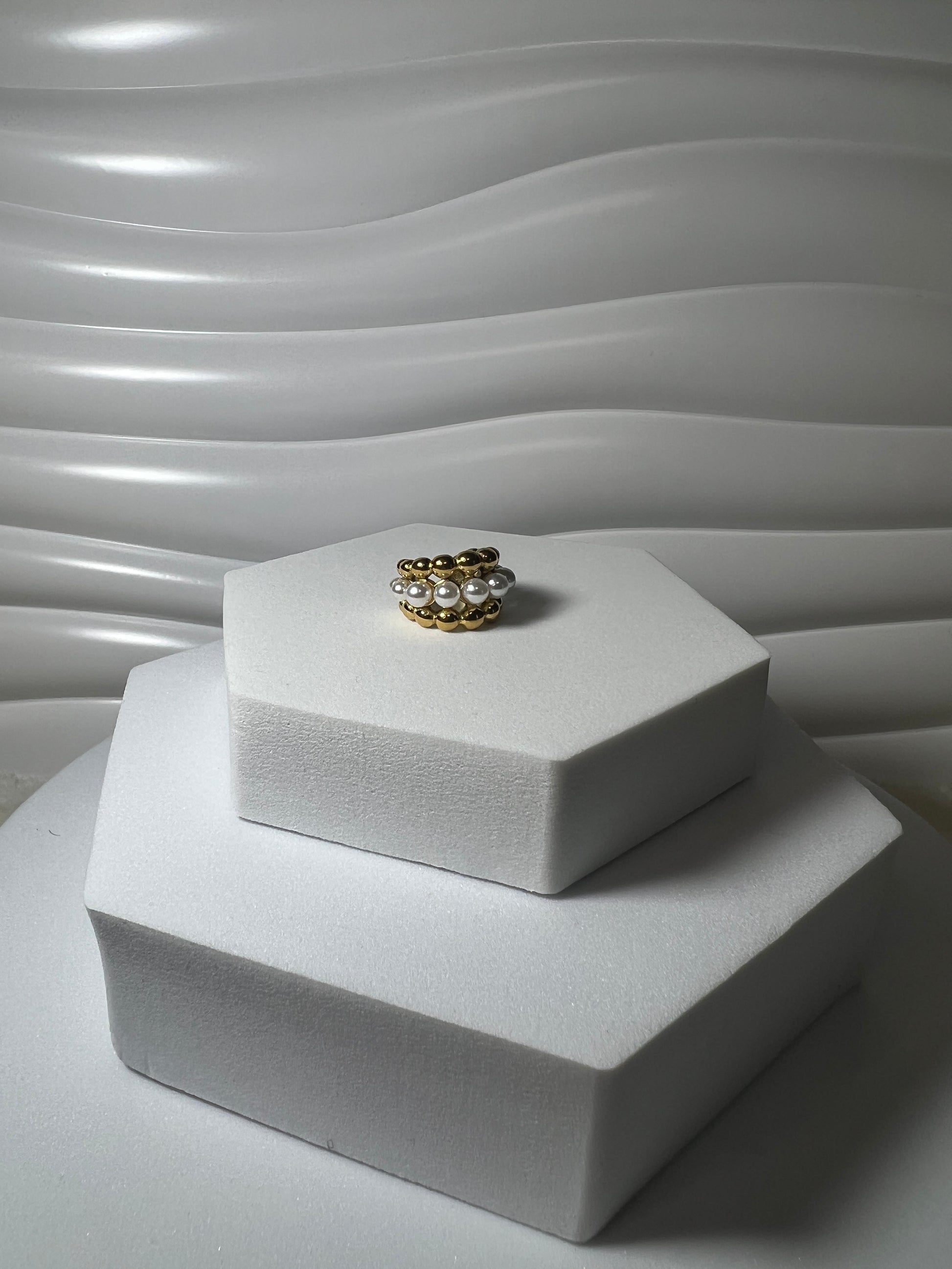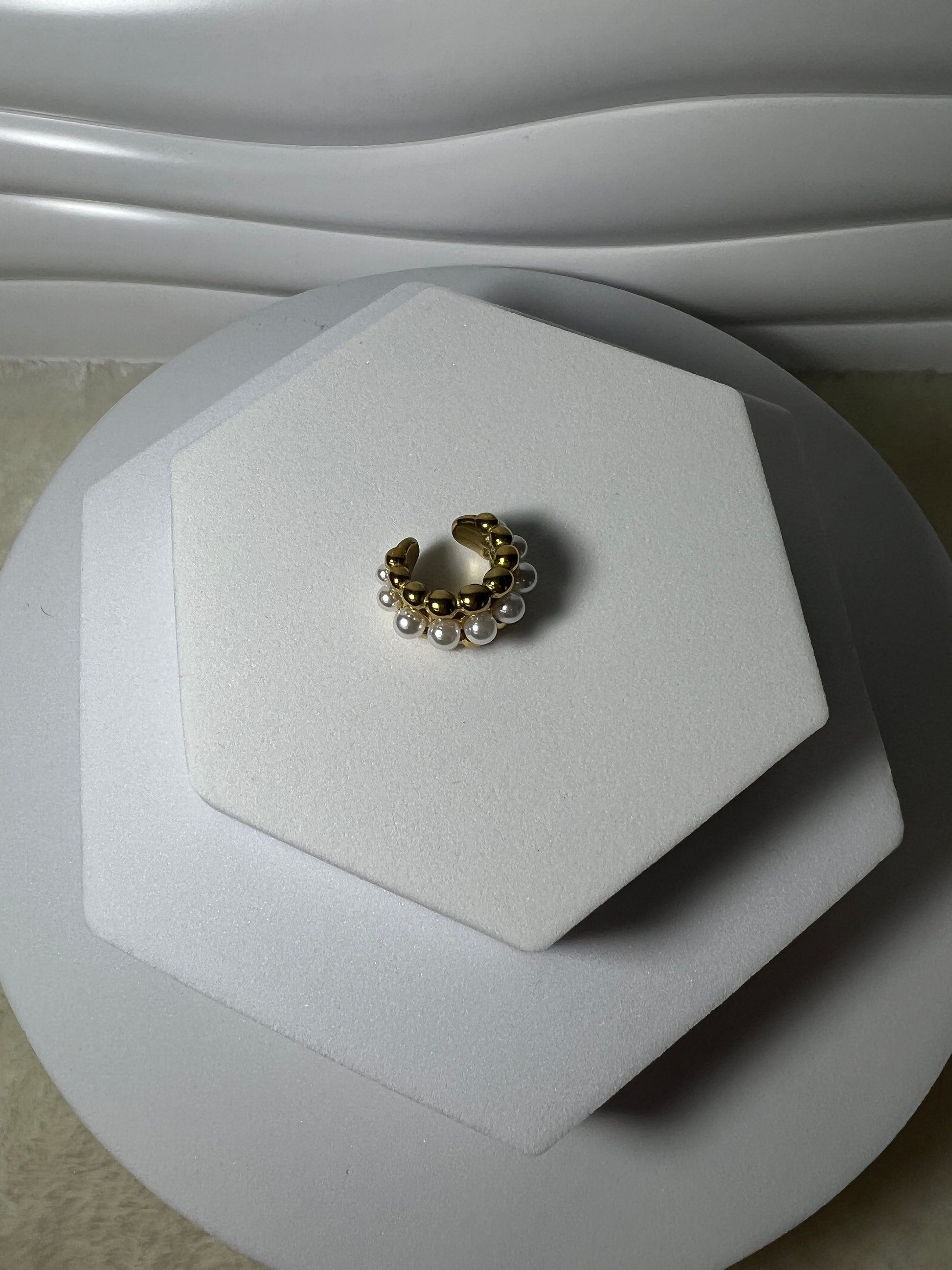 Ein zartes Ohrpiercing mit goldenen Kügelchen und feinen Perlendetails 🤍✨