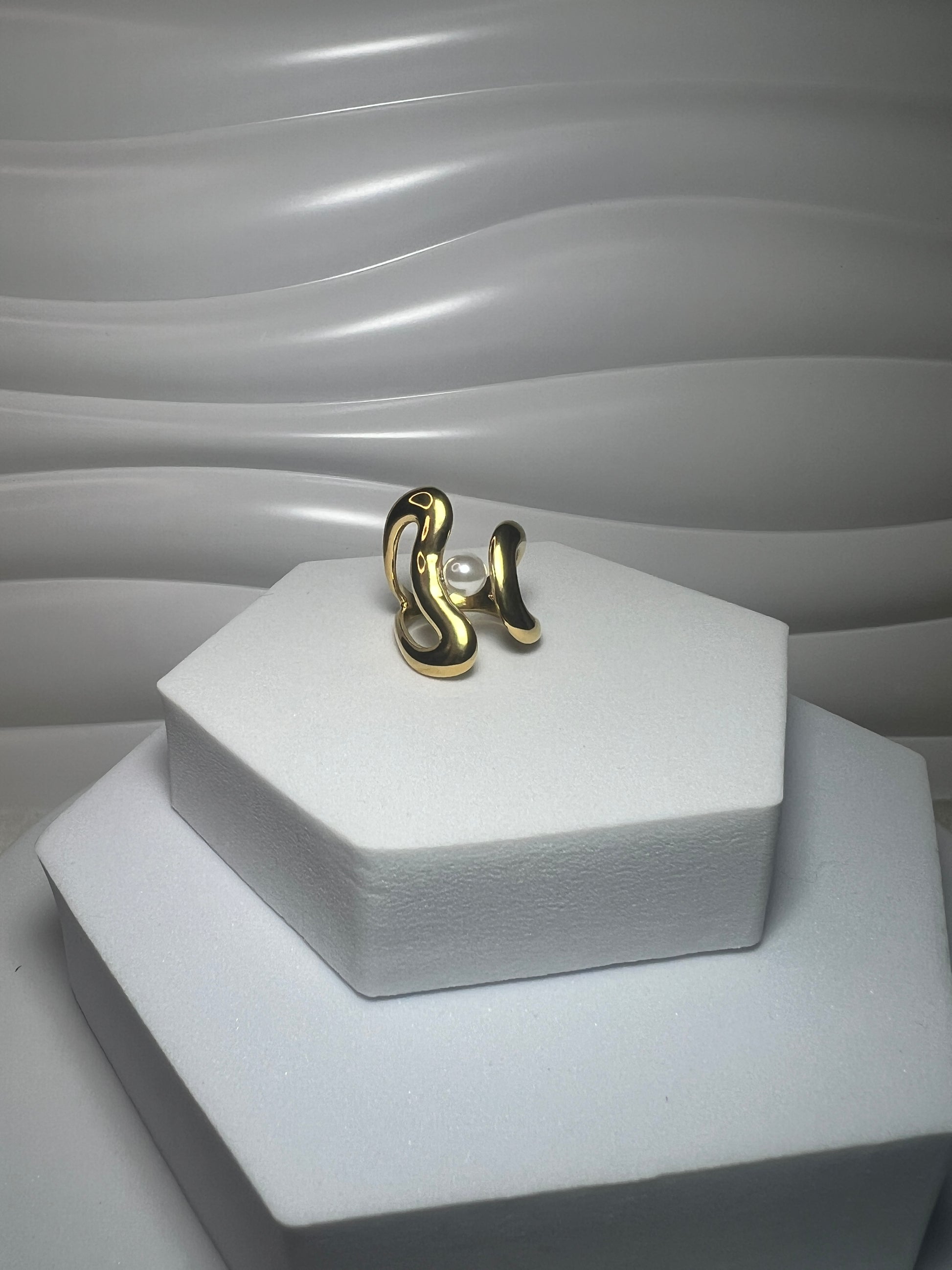 Der Serena Ring vereint moderne Eleganz mit einer weichen, fließenden Form, die an sanfte Wellen erinnert. Die glänzende 18k-Vergoldung und die feine Perlen-Note machen ihn zu einem einzigartigen Statement-Piece – minimalistisch, aber voller Charakter.
